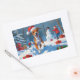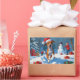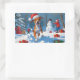 Uma ilustração animadora de feriado mostrando um cachorro alegre brincando na neve, vestindo um chapéu de Papai Noel e cercado por caixas coloridas de presentes. Ao fundo, as crianças constroem um boneco de neve ao lado de uma árvore de Natal coberta de neve, criando uma alegre terra maravilhosa do inverno. Perfeito por espalhar alegria e capturar a magia do Natal.