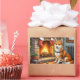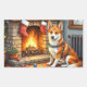 Adesivo Retangular Basenji Sitting by Fireplace with Christmas Lights