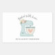 Uma batedeira de bolo azul fofo com flor decora este grande adesivo retangular assado com amor. Personalize com o seu nome. Criado para você por blackberry Boulevard.