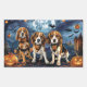Libere o espírito assustador com esta design sombria do Dia das Bruxas apresentando um bando de cachorros sob um céu escuro e iluminado, cercado por morcegos voadores e abóboras brilhantes. Perfeito para aqueles que amam um toque de diversão terrível com seus amigos peludos!