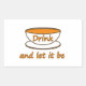 "Beba (chá) e deixe que seja" ( © Mira). Referia-me a este slogan de chá numa veia humorada, porque pode escolher ler isto como "Beber e deixar que seja", e como tal aplicar-se a qualquer bebida (mesmo que a xícara e a cor da bebida sugeram chá). No entanto, é sobretudo uma citação para os amantes do chá, que encontram calma, paz e relaxamento numa xícara de chá bem feita.