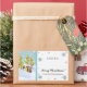 COLOR PALETTE: Moderna tendência natalícia de azul claro e branco com limão amarelo, ouro, verde e vermelho. DESIGN COLLECTION: Com o texto "A Gift For: and Merry Christmas, from your Family name" (Um presente para: e Feliz Natal, do seu nome familiar), este é um adesivo branco, divertido, Natal e inverno, com o protetor do pacote de presentes, selo ou conjunto de decoração que foi feito de trabalho de arte de aquarelas pintadas manualmente de Audrey Jeanne Roberts. As árvores de Natal são decoradas com uma terra vermelha cortada, topos de árvores de estrelas girando em pilhas de neve com flocos de neve feitos à mão caídos no fundo e ursos polares bebês brincando entre si com arcos ao redor do pescoço. Este design está disponível em uma grande variedade de produtos.