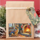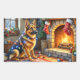 Adesivo Retangular Belgian Shepherd Fireplace with Christmas Lights