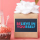 Boost your confidence and spread positive vibes with this bold "Believe In Yourself" motivational quote, featuring striking pink and black typography. A perfect inspirational message for self-love and empowerment.