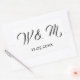 Os adesivos perfeitos para artigos de papelaria relacionados ao casamento, este item apresenta um esquema de cor branca e preta. Com a letra preta escrita sobre fundo branco, as iniciais do casal estão no centro com a data do casamento abaixo. Escolha entre várias formas. Personalize o seu hoje!