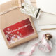 Flocos de neve bonito em fundo vermelho com mensagem, "Bênçãos de Natal" aparece neste adesivo de Natal. Use para iluminar essas malas especiais de férias, artesanato, decoração e muito mais!