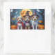 Adesivo Retangular Bernedoodle Dogs Pumpkin Halloween Engraçado