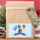 Foto fofa fofa fofa do cão da Montanha Bernesa desejando "Parabéns" e balões ao fundo