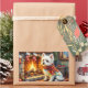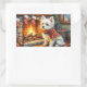 Adesivo Retangular Bichon Frise Fireplace with Christmas Lights