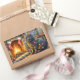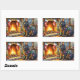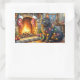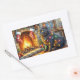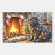 Adesivo Retangular Black Cat Sitting Fireplace with Christmas Lights