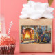 A cozy and enchanting Christmas artwork featuring a beautiful black cat sitting beside a warm fireplace adorned with stockings and twinkling Christmas lights. This festive scene captures the mysterious charm and elegance of the black cat, making it a perfect piece for cat lovers and holiday home decor. Add a touch of magic, warmth, and feline grace to your Christmas celebrations with this delightful artwork.
