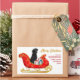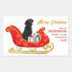 Nesses adesivos decorativos de Natal bonito, um cão preto Labrador Retriever senta-se num bonito trenó decorativo vermelho e ouro. Ao lado do cão, os pacotes de presentes são amarrados com arcos coloridos. O texto dourado à direita diz "MERRY CHRISTMAS" e o texto personalizado está vermelho. Perfeito para sua correspondência de Natal ou pacotes de presentes! Mais imagens de cães recuperáveis, assim como de outras raças, no Dog Village.