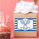 Este adesivo moderno do country club apresenta raquetes de tênis e uma bola acima do nome da sua equipe de tênis e data estabelecida. Etiquetas listradas azuis e brancas para seus jogadores de tênis e membros do clube country.
