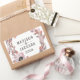 Boho Feather Peach Floral Wreath Casamento favorece autocolantes com letra de script de pincel de moda! Veja meu compro para ver a suíte de casamento inteira para este design!