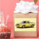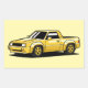 A chunky retro pickup coupe hybrid in bright yellow. cartoon style perfect for fans of automotive art.