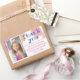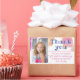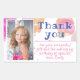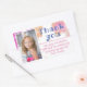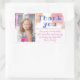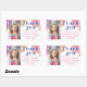Bolhas Rosa Foto Girly Aniversário Obrigada Pelos Stickers. O adesivo tem bolhas coloridas em cores púrpura e rosa e pequenas estrelas coloridas. Adicione o nome e a foto do seu filho. Você também pode alterar o obrigado que você envia se quiser.