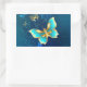 Adesivo Retangular Borboletas de ouro em um fundo azul