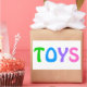 Adesivo Retangular BRINQUEDOS em Letras Coloridas