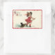 Imagem doce e antiga de uma bruxinha montando sua vassoura com um gatinho preto, é apresentada neste adesivo de Halloween. Com "Saudações de Halloween", este adesivo é perfeito para aquele envio especial de Halloween, scrapbooking e decoração para o Halloween!