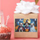 Uma cena divertida de Halloween, com um cachorrinho malicioso a espreitar-se de uma abóbora esculpida, rodeada por vibrações de outono assustadoras. Com um charme viscoso e cores de outono, é o toque perfeito de humor para a estação.
