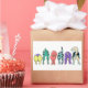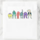 Uma fila de cães coloridos mostrando seus bumbuns bonitos.