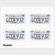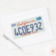 Placa de licença do sesquicentenário da Califórnia de 1999 (em 2000). Códigos hexadecimais: números azuis 1D287A, C83106, adesivo azul 3B9FDA.