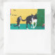 Adesivo Retangular Cachorro De Gato Divertido Jogando Árvore De Natal