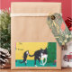 Adicione um pouco de diversão de gato e cão com estes adesivos personalizados. Eles apresentam uma pintura de um gato brincando com uma varinha e um cachorro girando em volta para ver o que está acontecendo, perto da árvore de Natal, por CherylsArt. Para e De é o texto que está pronto para ser impresso ou você pode facilmente alterar o texto no formulário modelo.