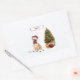 Adesivo Retangular Cachorro de Natal Engraçado, Francês, com Árvore