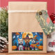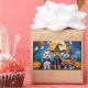 Uma cena divertida de Halloween, com um cachorrinho malicioso a espreitar-se de uma abóbora esculpida, rodeada por vibrações de outono assustadoras. Com um charme viscoso e cores de outono, é o toque perfeito de humor para a estação.