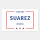 Mostra "Vote Suarez 2024" e três estrelas abaixo, emolduradas em uma caixa vermelha. Para fãs do prefeito de Miami Francis Suarez, que está concorrendo para ser eleito presidente nas eleições de 2024. Ele é um candidato republicano, de direita e conservador da Flórida. Equipamento de campanha. Mostre seu apoio.
