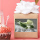 Esta design apresenta uma fotografia adorável de lírios brancos e uma folha verde assentando em rendas brancas e suaves. O texto ao contrário é fácil de personalizar para o seu casamento ou outro evento.