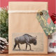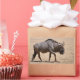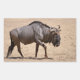 Beste-selvagem azul (Connochaetes taurinus) caminhando sobre o solo arenoso visto do perfil