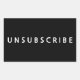 A palavra "UNSUBSCRIBE" é impressa a branco sobre fundo preto. A cor da fonte pode ser alterada.