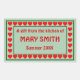 Os adesivos retangulares vêm em folhas de quatro, e são totalmente personalizáveis. Mude o texto para qualquer coisa que você quiser. Este adesivo apresenta uma borda brilhante de corações vermelhos em um fundo verde e uma grande área de texto personalizável. Adequado para molho de tomate, molho de macarrão, molho de marinara, latas, zombaria, conserva, pesto, salsa, onde quer que seu gênio de cozinha te leve! Crie etiquetas para fazer belos presentes da sua cozinha.