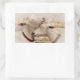 Um par de cabras fazendas brancas adoráveis, mostrando uns aos outros algum amor e afeto! Esta bela fotografia de cor macia mostra o gado de uma forma fofa, capturando um momento gentil e amoroso entre um casal de cabra numa caneta numa feira de exposição agrícola.