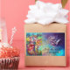 Design de arte colorida, elegante e vibrante com dançarinos de carnaval românticos: Belas dançarinas balneares, linda loira com figurinos cintilantes e empinados está dançando com um jovem Harlequin. Pintura aquosa em rosa claro, fúcsia, verde, vermelho, azul, cores amarelas, faíscas douradas inspiradas na Comédia de Arte (Commedia dell'arte) e no Carnaval de Veneza. É também um belo presente para o natal, feriado, ocasiões especiais, festas de aniversário, bola de mascarada do ano novo, Dia de os namorados.