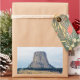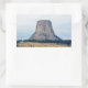 Uma fotografia de uma bunda lactolítica conhecida como Monumento Nacional da Torre Devils, torcendo sobre a paisagem do campo de Wyoming, um dia de Verão. Imagem Copyright ©2018 Kimberly J Tilley.