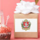 Vinheta com design com design com casaco de braços de Vilnius, capital da Lituânia; com ilustração do santo Christopher e da criança Jesus