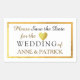 Um elegante design de "salvar a data" em fundo branco e claro com uma falsa borda dourada e um pequeno coração de amor, personalizado com seus próprios nomes.. para seus clássicos convites de casamento.