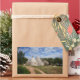 Um adesivo de fotografia retangular com a pedra branca, casquinha formada por casas tradicionais de trúlli com uma entrada de água e um jardim com oliveiras sob um belo céu em um resort de férias perto de Alberolbello, na Apúlia (Apúlia), no sul da Itália.