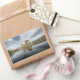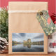 Um autocolante de fotografia retangular com o castelo histórico Eilean Donan numa manhã tranquila, com reflexo na água tranquila da costa oeste da Escócia, perto de Ilha de Skye.