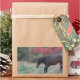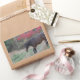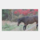 Adesivo Retangular Cavalo castanho nas árvores vermelhas do outono