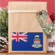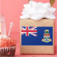 Retângulo com pavilhão das Ilhas Cayman (território ultramarino britânico), com a bandeira azul desfigurada, com a bandeira da União no cantão e a casaco de armas das Ilhas Cayman na mosca