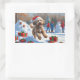 Adesivo Retangular Cena de Natal com Bernedoodle Festivo na Neve