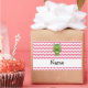 Crie o seu personalizado Personalizado com um nome, monograma ou iniciais ou dizendo um sapo de desenho animado fofo, verde, com um fundo de padrão branco e cor-de-rosa zag e faixa branca. Ideias bonitas de presente de sapo para crianças.