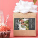 Perfeito para casamentos de vinhedo ou favores de garrafa de vinho, essas etiquetas personalizadas apresentam monograma com nomes de noiva e noivo, data de casamento, tipo de vinho, e obrigado mensagem que você pode ser completamente personalizada. Estilo de fundo do quadro negro com design de texto branco.