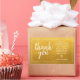Chique, moderno e simples rótulo de agradecimento com sua mensagem pessoal em letra manuscrita caligrafada branca elegante e tipografia estilosa em um fundo dourado clássico. Perfeito para seus presentes de Natal, sacolas de presentes de Natal, pacotes ou como selo de envelope para enviar aos seus familiares e amigos, ou como empresa para seus clientes. Exclusivamente projetado para você pelo Happy Dolphin Studio. Se precisar de ajuda ou produtos correspondentes, entre em contato conosco em happydolphinstudio@outlook.com.