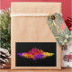 Impressão de Arte do Skyline de Chicago, composto por prédios de referência com nome de cidade e de estado. Efeito colorido da aquarela sobre fundo preto.