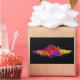 Impressão de Arte do Skyline de Chicago, composto por prédios de referência com nome de cidade e de estado. Efeito colorido da aquarela sobre fundo preto.